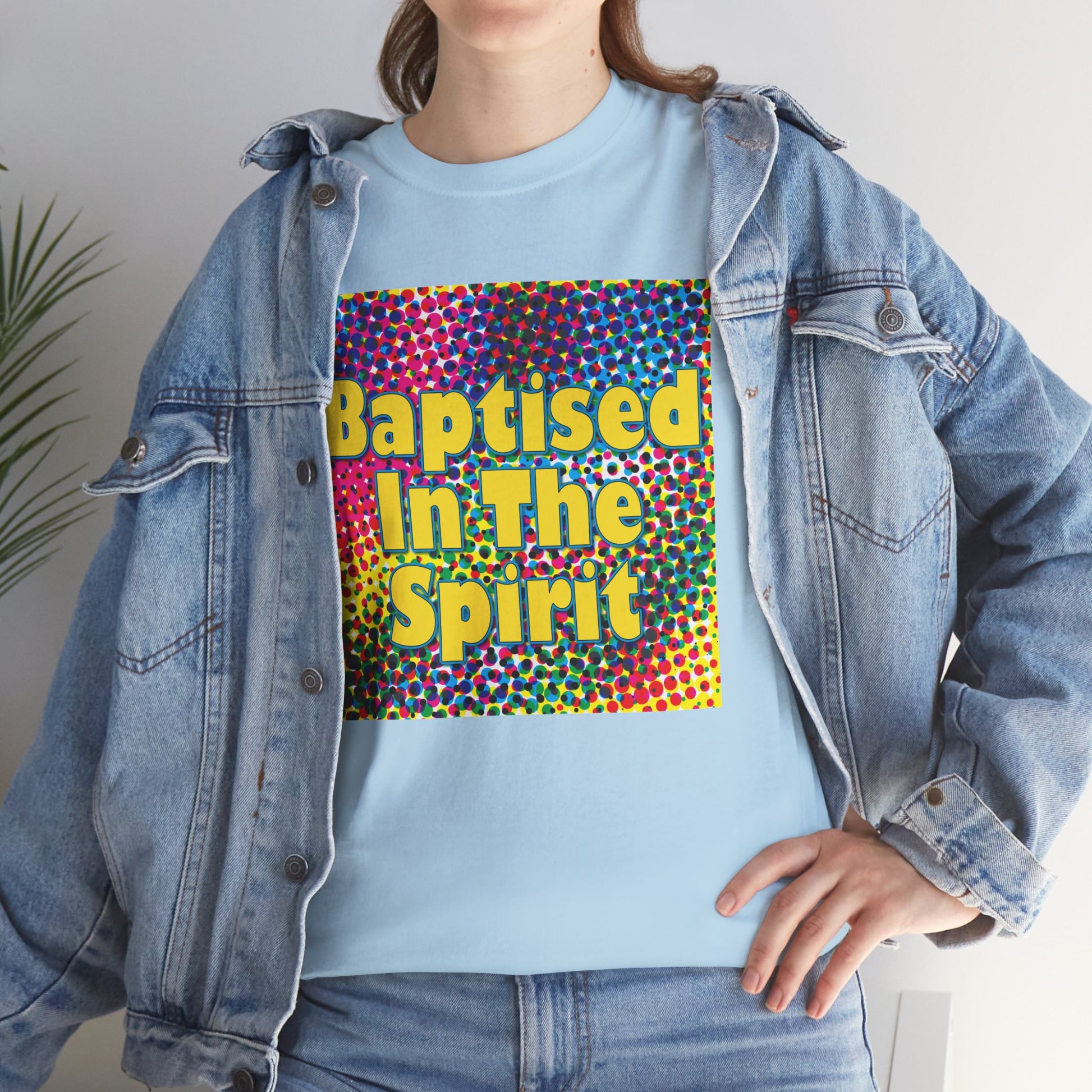 This Christian-inspired T-shirt features the empowering phrase "Baptised in the Spirit" boldly displayed on the front, serving as a meaningful declaration of faith. Crafted for comfort and style, it’s perfect for daily wear or church events, inspiring spiritual confidence wherever you go.